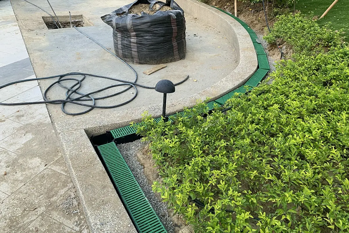 此時您可於積水處購買安裝PP輕型截水溝,安裝後可迅速將表面水排乾淨,土壤不潮溼,植栽恢復翠綠,庭園小花盛開,這就是安裝PP輕型水溝的好處,詳細排水量於網頁內容介紹。