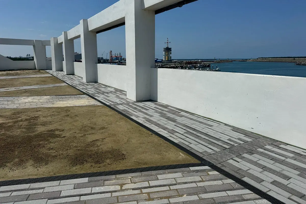 屋頂排水溝應於防水層施工完成後先行埋設,埋設後再開始後續隔熱及保護層等工項。 我司所生產的PP截水溝添加各式加強助劑,具有耐高溫不翹區,抗UV不脆化,防鹽害不腐蝕等特性,非常適用於屋頂排水。