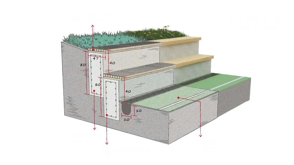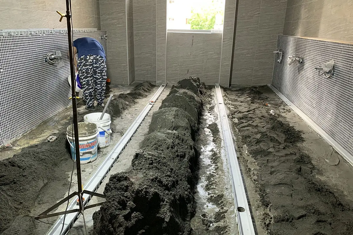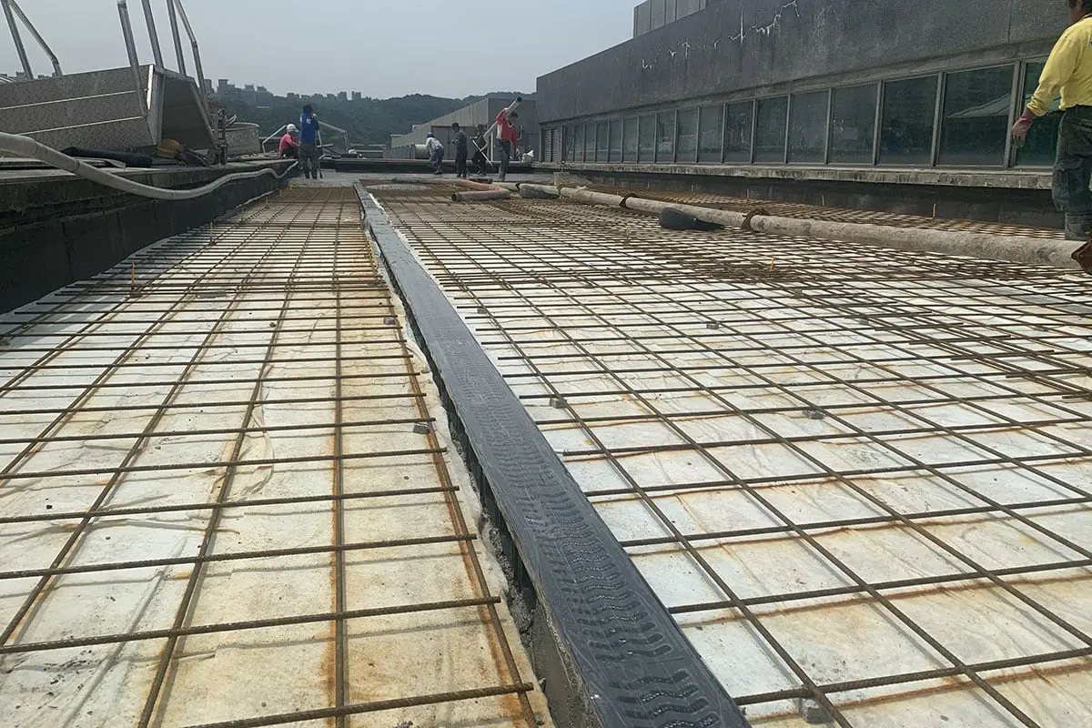 屋頂排水溝應於防水層施工完成後先行埋設,埋設後再開始後續隔熱及保護層等工項。 我司所生產的PP截水溝添加各式加強助劑,具有耐高溫不翹區,抗UV不脆化,防鹽害不腐蝕等特性,非常適用於屋頂排水。