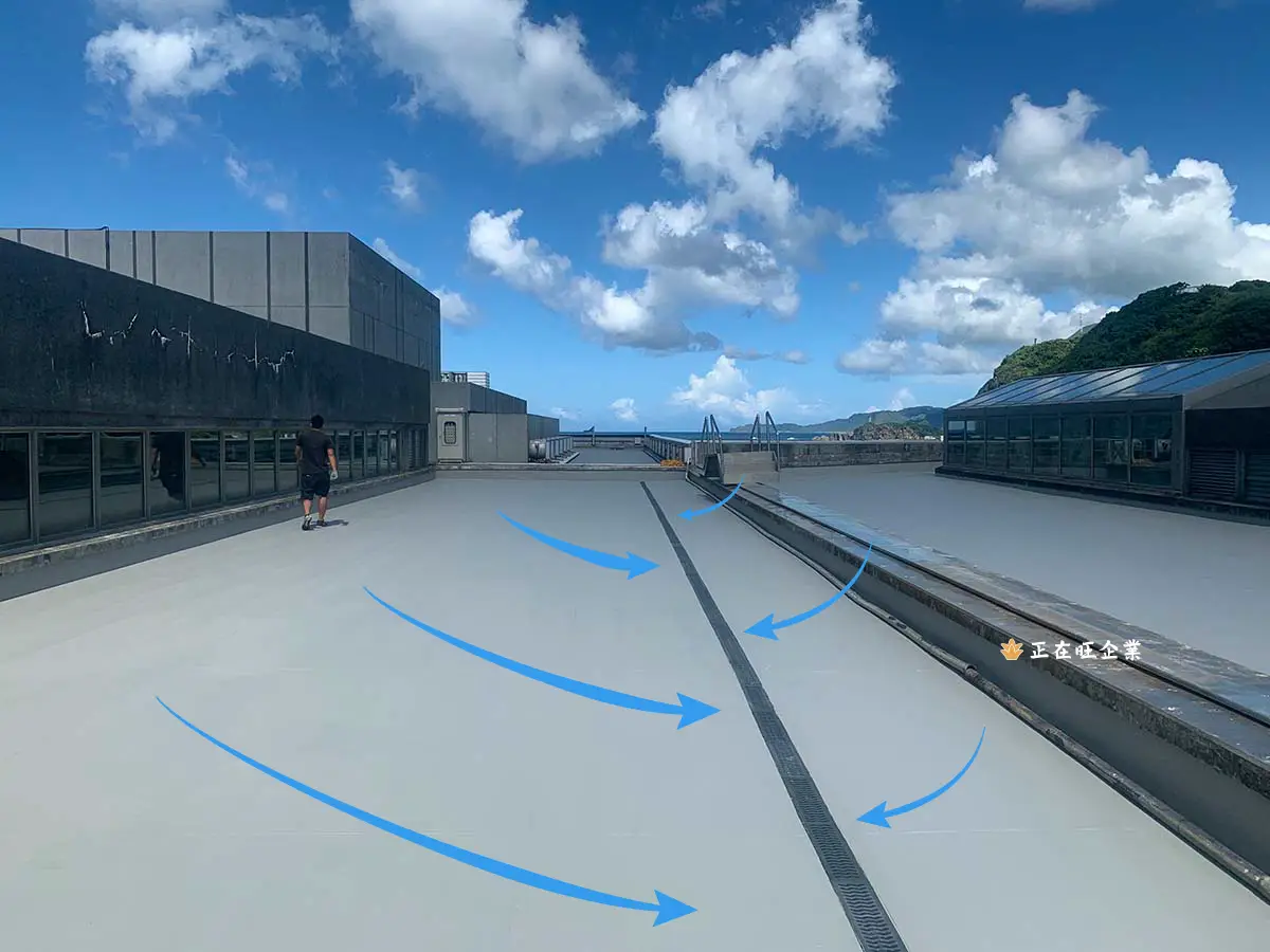 屋頂使用線型排水在洩水坡度的施工上師傅也更加方便,屋頂PP截水溝具有耐腐蝕,抗太陽UV照射等特性,用於海邊非常適合。