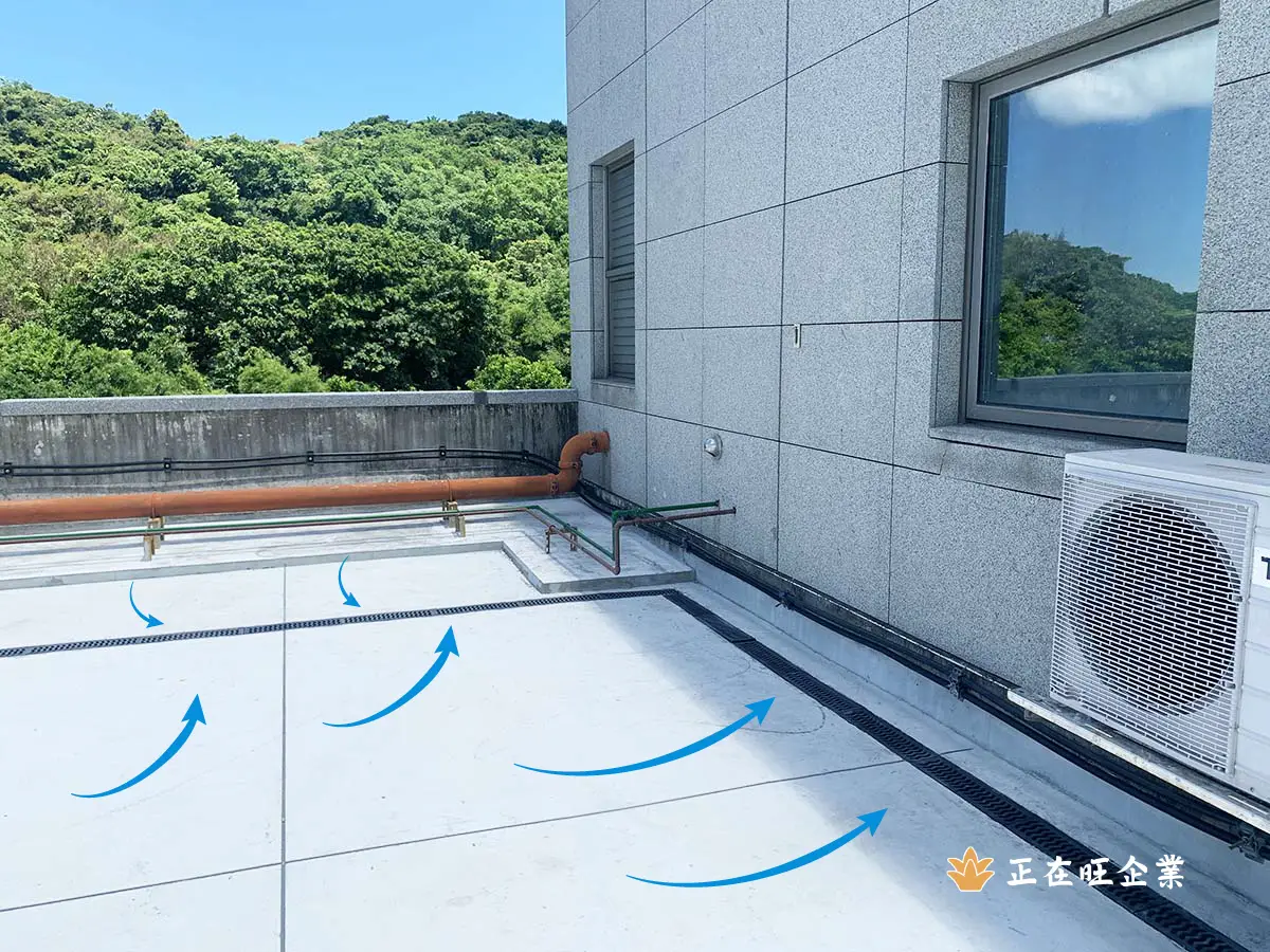 屋頂施作PP溝時抓洩水坡度也比點排水來的容易許多,泥沙,塵土也不易於單點淤積,PP溝蓋更具有耐鹽腐蝕性與抗紫外線的能力,用於海邊,山上等區域格外適合。